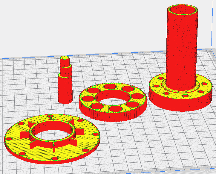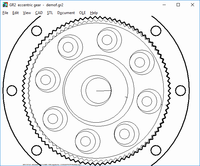 GR2 generates STL files for 3D printing of drive shaft, output shaft, bearing caps, spacer, rollers. Planetary and ring gear STL files are available from ZAR1+. Only need rolling bearings, screws and pins to build a functional model of the calculated eccentric gear.