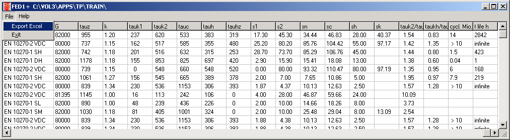 Spring travel, shear stresses, safety coefficients and life expectation have been added to FED1+ Preview table (34 columns now).