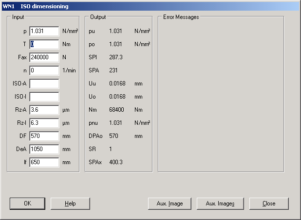 When use Dimensioning window of WN1 to calculate a press fit, you can input either required pressure p or transferable torque T and axial load Fax. At input of Fax and T, WN1 calculates equivalent pressure p. If you change T or Fax, p is recalculated. If you change p, T and Fax are recalculated.