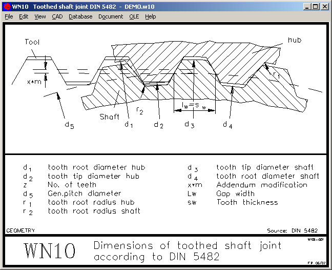 WN10 generates profile drawings, tables of toothing data, production drawing. Tooth profile may be exported as true-scale drawing into CAD or CNC software by means of DXF or IGES file.
