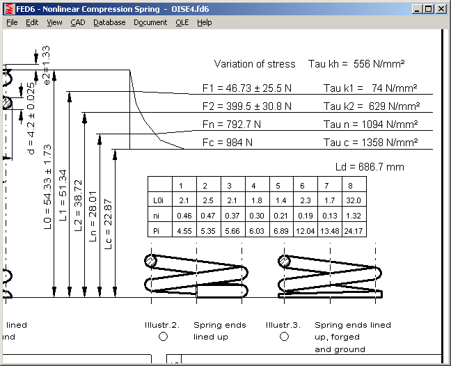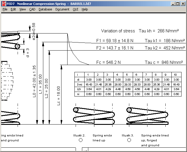 Coil pitch P of conical compression spring has been added to printout and production drawing . If pitch ratio Po/Pu <> 1 defined, pitches Po and Pu at upper and lower end are printed.