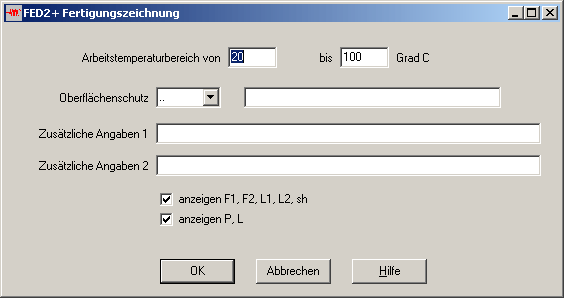 In der Fertigungszeichnung werden Drahtlänge (Einzugslänge) und Windungssteigung mit ausgegeben, wenn zuvor unter Bearbeiten->Fertigungszeichnung "Anzeigen L, P" angekreuzt wurde.