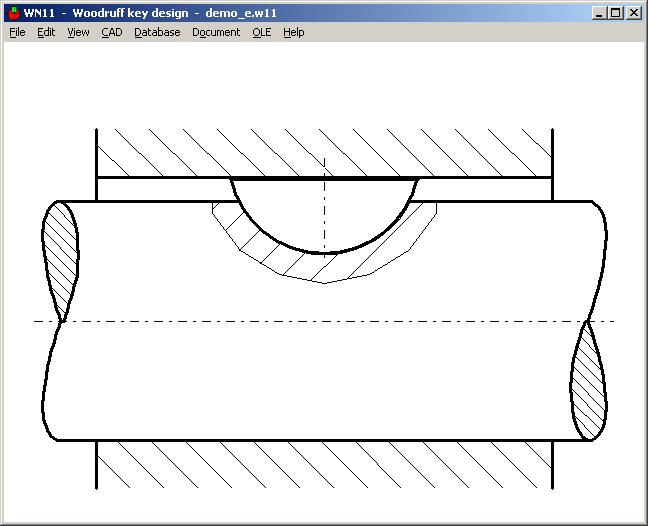 A true-scale drawing of the Woodruff key and profile drawings of shaft groove and hub groove can be exported to CAD via DXF or IGES interface.