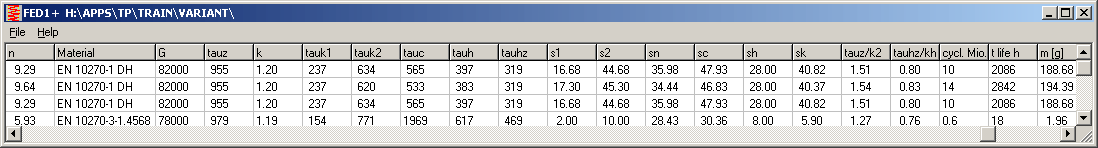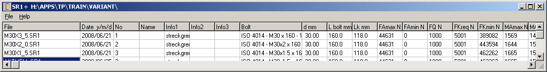 Preview table (at "File->Open Table" ) was extended by forces and safety factors to 30 columns now. Preview is predestined for variable calculations. Create a new folder and save the varation calculations under different file names.