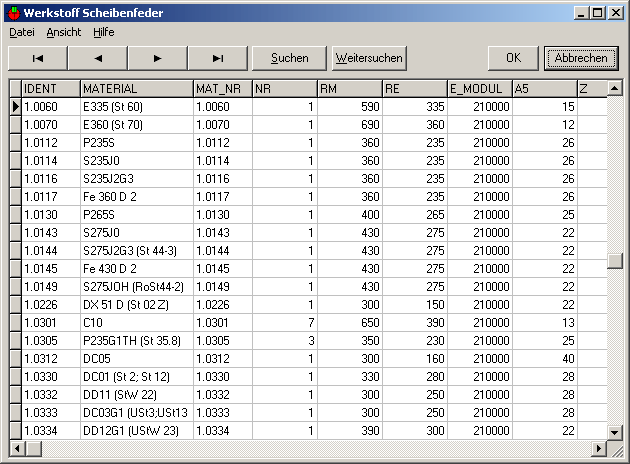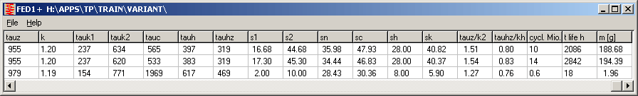 In der Voransicht-Tabelle mit Federdaten wurde die Masse m ergänzt. So kann man in Variantenberechnungen die effektivste und kostengünstigste Feder ermitteln.