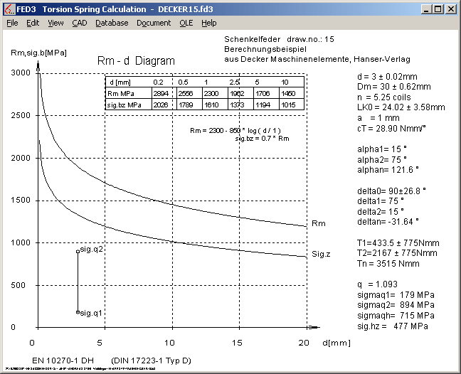 Diagram with tensile strength and permissible bending stress as function of wire diameter was added in FED3+. A table with permissible shear stress and tensile strength for some wire diameters has been added in the equivalent diagrams of FED2+, FED3+, FED5 and FED6.