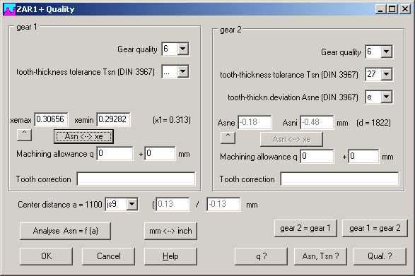 New Version 17.0 of ZAR1+ allows to switch input fields between tooth thickness tolerance and generated addendum modification coefficients. Relation between Asn and xe: