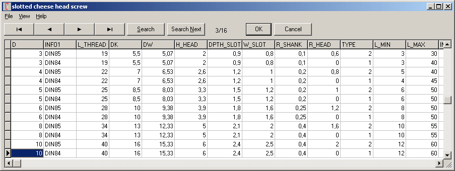 Slotted cheese head screw form 1 and form 2 were integrated into one database. Field "TYPE" defines Form 1 or 2.