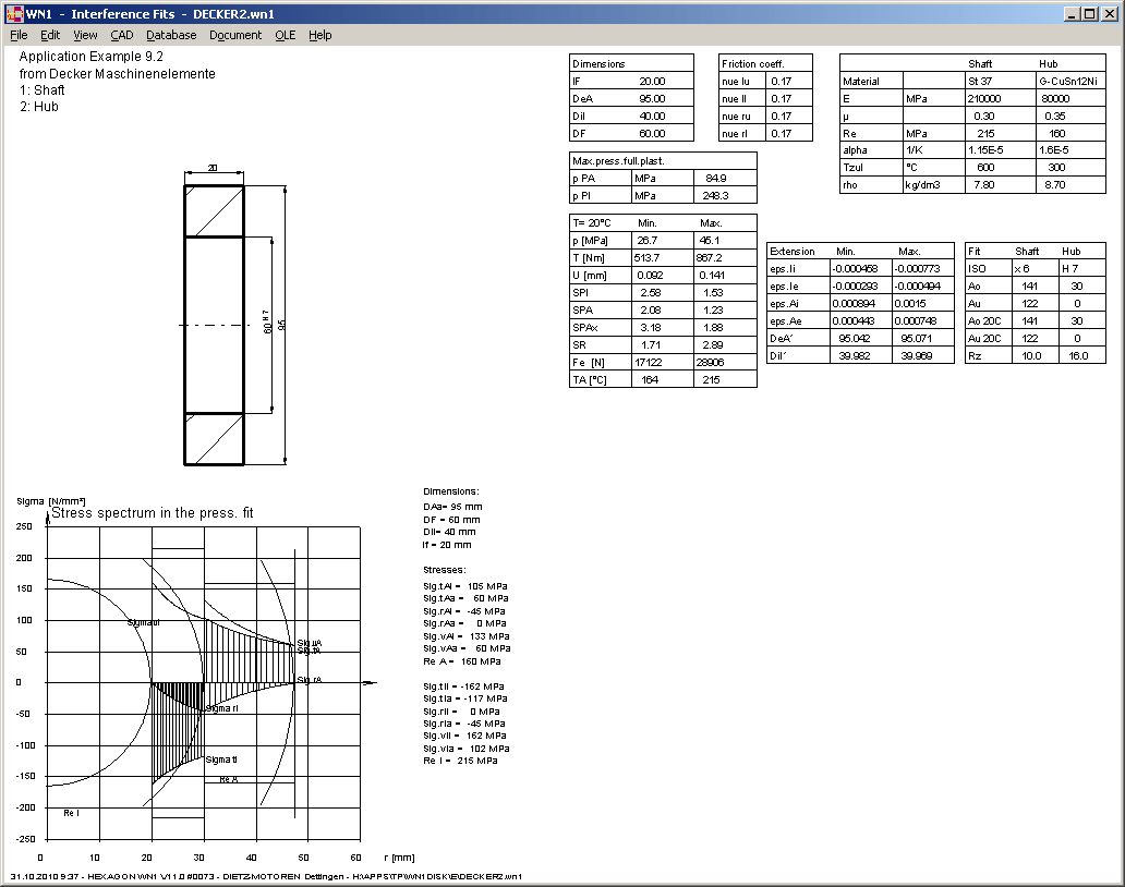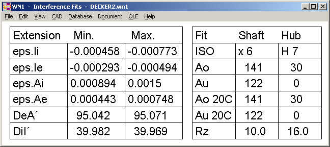 As a result of pressing or shrinking process, hub will be enlarged and shaft will be compressed. Deformation factors and extension is listed in the printout. New release of WN1 also lists the extended outside diameter of the hub, and for hollow shafts the reduced inner diameter after the pressure process as well. A table of the deformation data also has been added to Quick view (for non-stepped hubs only).