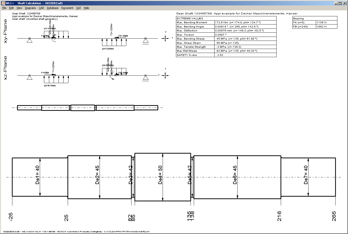 Draft of shaft with load and bedding, dimensioned drawing and result tables can be printed in Quick3 view on one screen now.