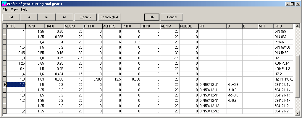 Tooth profile database was extended with addendum and dedendum of light precision engineering tools according to DIN 58412. Only the typical DIN 54800 specific chamfer at the tool head cannot be represented.