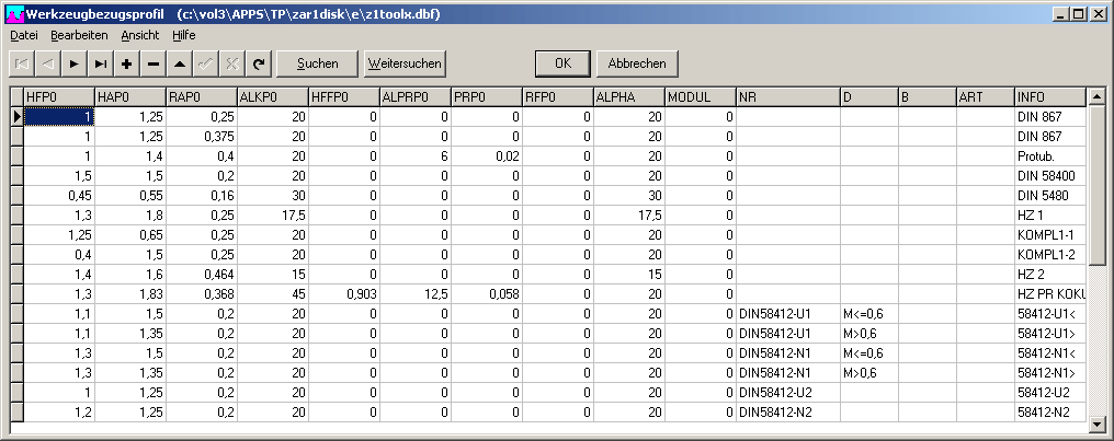 ZAR1+, ZAR5 Werkzeugdatenbank erweitert um DIN 58412