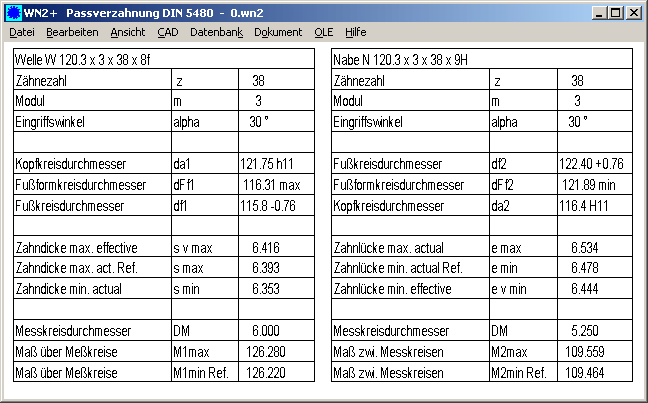 In WN2+ kann man freie Profile abweichend von DIN 5480 definieren. Wenn ein solches Profil eingegeben wurde, werden jetzt in den Tabellen die Zeilen "Bezugsprofil DIN 5480", "Gutlehrring DIN 5480.." und "Ausschußlehre DIN 5480.." nicht mehr angezeigt. In Tabelle DIN 5480:1991 waren außerdem Min/Max-Wert vom Kugelmaß der Innenverzahnung vertauscht bzw. ohne Vorzeichen dargestellt.