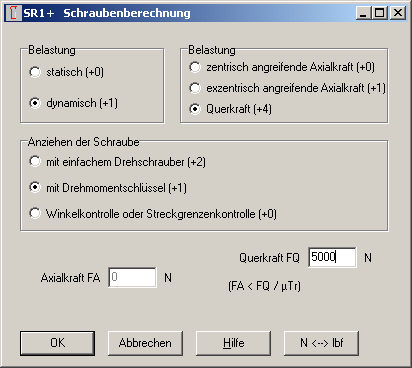 Bei großen Abmessungen sind die Zahlenwerte für Kräfte und Drehmomente manchmal unübersichtlich groß, deshalb kann man jetzt auch die Ein- und Ausgabedaten von Kräften in kN statt N und von Drehmomenten und Energie oder Arbeit in Nm statt Nmm konfigurieren.