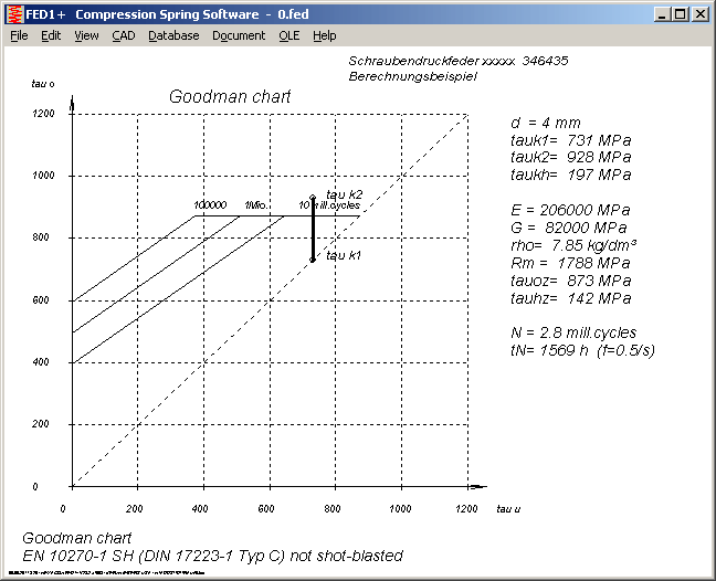 A recently program modification that suppresses output of life cycles if maximum stress tauk2 is higher than permissible stress tauoz (see info letter 125) was not favored by all users. So we added an option to get back the earlier printouts with calculated (theoretic) life cycles and life time in any case by setting of "Hide Warnings" at "Edit->Calculation Method"