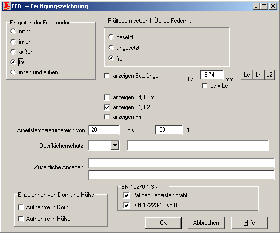 FED1+, 2+, 3+, 5, 6, 7: Werkstoffangabe in Fertigungszeichnung konfigurierbar