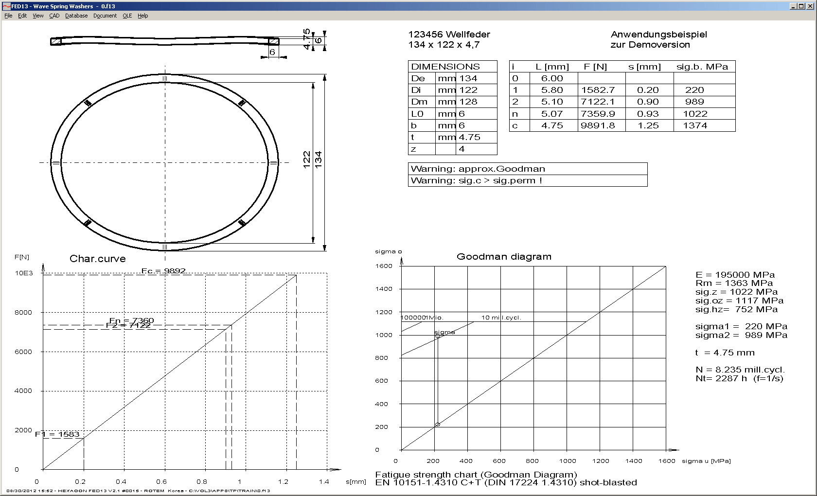 New Quick3 View with drawing of the wave spring washer, F-s diagram, Goodman diagram and tables on one screen has been added into FED13.