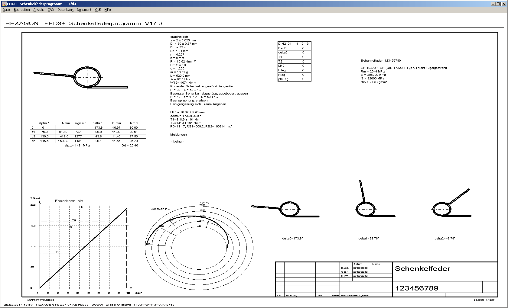 Die neue Quick4-Ansicht enthält alle Quick3-Daten sowie polare Federkennlinie und Federzeichnungen in Position 0,1,2 in einem A3-Zeichnungsrahmen.
