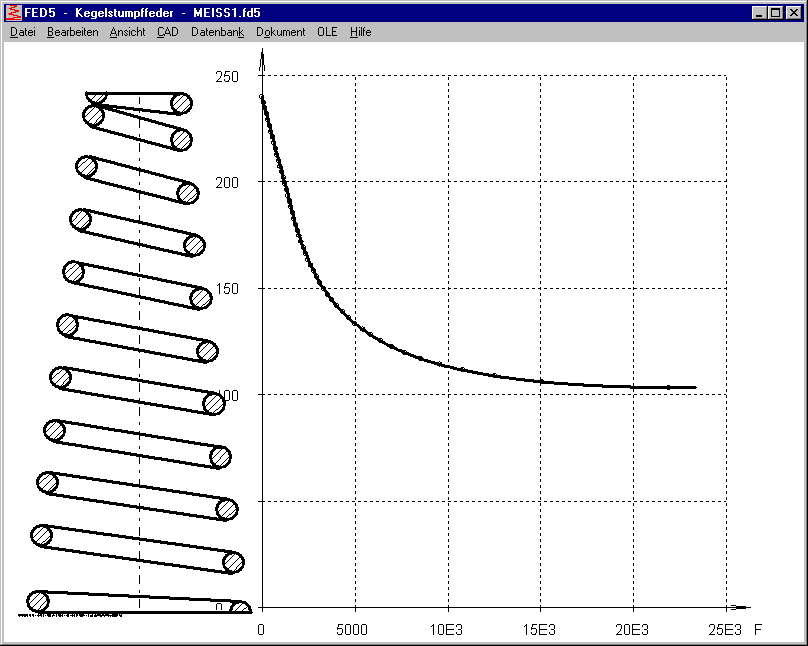 Bei der Animation der Kegelfeder wird jetzt neben die Feder die Federkennlinie gezeichnet.