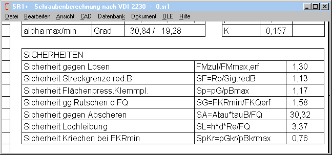 Unter Bearbeiten->Berechnungsmethode "Kriechen bei FKRmin" ankreuzen, dann wird die Sicherheit "SpKr" gegen Kriechen berechnet.