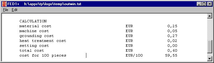 At "View->Printout->Cost" you get an approximate cost calculation of the spring. This module was programmed in 1994 and not modified since then. In 2004, base currency DM was changed into Euro with a factor of 0.511.
