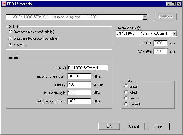As alternative to pick from database, you can input base properties of material (E module, tensile strength, yield strength, permissible bending stress) directly now.