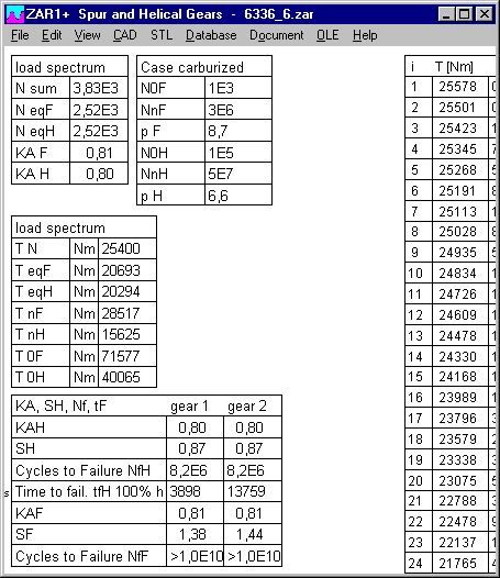 ZAR1+,ZAR2,ZAR5,ZAR6,ZAR7,ZAR8: Load spectrum: lifetime to ISO 6336-6