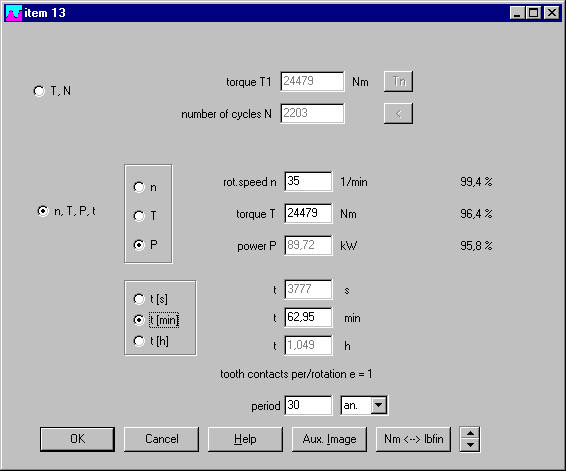 In standard input of load spectrum, you can input torque or power and speed, program calculates and shows relation to nominal values in %.