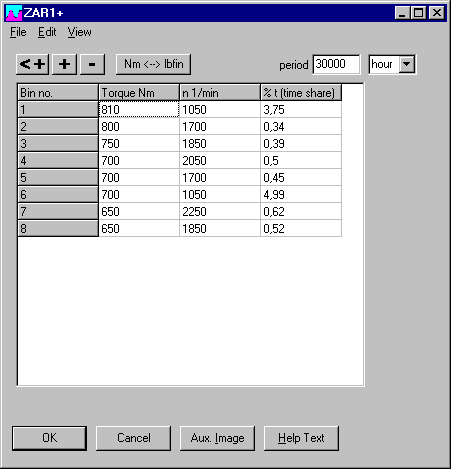 Until now, you had to input bins of load cycles in correct order, beginning with the highest torque. Now you can enter bins unsorted, and let sort by ZAR software.