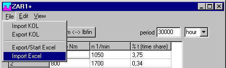 For exchange with MS-Excel a new Export/Import Excel has been added in the menu. Or you can use Copy and Paste for import/export of load spectrum tables with any Windows spreadsheet. Furthermore, you can import or export load bins by means of KOL file. The proprietary KOL format was extended by speed for each bin.