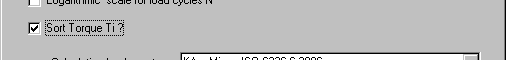 Limits of the y axis (torque) has been changed, so that S/N curve can be drawn in any case. Equivalent S/N curve of the load spectrum is no longer drawn nor the corresponding parameters TnFeq, TnHeq, T0Feq and T0Heq, as not mentioned in ISO 6336-6. Scale of the x axis (cycles) can be drawn linear or logarithmic. Program calculates torque for safety factors SH=1 and SF=1 in an iteration, as well as static safety SHplast and SFplast for the highest (1st) torque of the load spectrum.