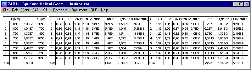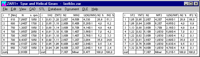 Cause 4 Miner sums have to be calculated (pitting, tooth root stress gear 1 and gear 2), you get a huge number of data that can be listed in 3 tables.