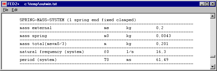 FED1+ and FED2+ calculates resonance frequency of spring-mass-system, if you input an external mass. Time required for one stroke (period T = 1/f) in milliseconds has been added in the printout.
