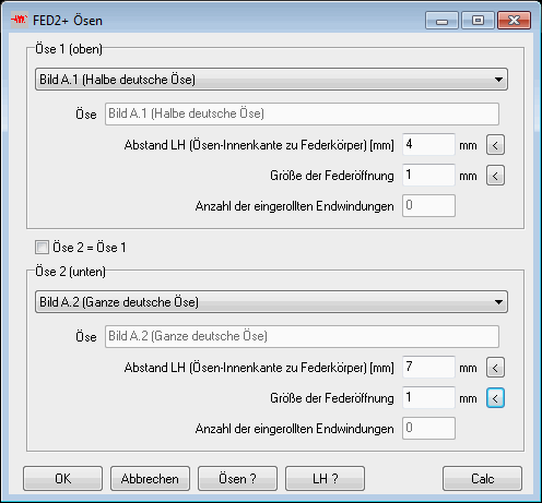 Für die Eingabe der Ösenlänge LH gibt es jetzt Vorschlagsbuttons. Je nach gewählter Ösenform und dem Innendurchmesser Di wird dann die Ösenlänge vorgeschlagen.