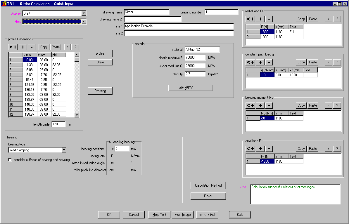 In a new Quick Input dialogue window you now can enter all dimensions, load, material and bearing data.