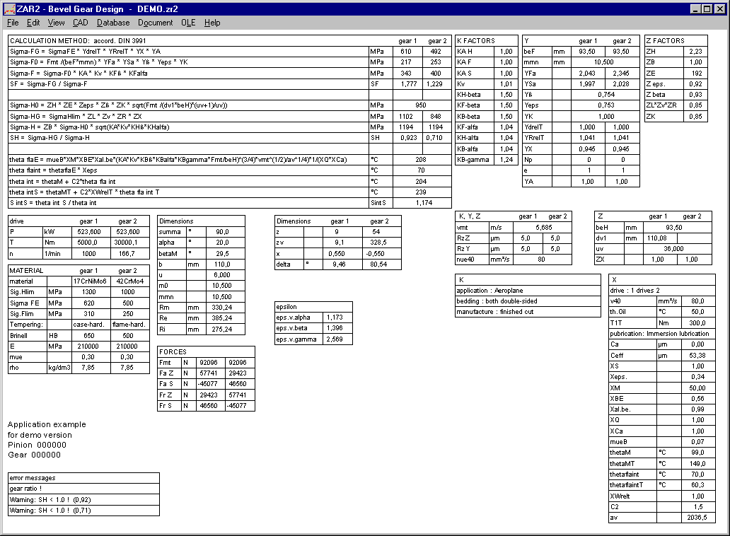 Similar as in ZAR1+, in ZAR2 and ZAR6 a new screen was created with essential formulas, factors and results of strength calculation according to DIN 3991.