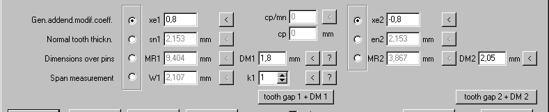 A new button "tooth gap + DM" in the input window draws tooth gap with measuring circle in the background window. So you can easily test different ball and pin diameters. The suggested value according to DIN 3960 is not always suitable for gears with small tooth height (involute splines), calculated diameter must be checked. By means of the drawing you can evaluate if a flattened pin or ball must be used.