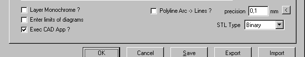 If "Exec CAD App" is checked at "File\Settings\CAD\", the installed software to edit or view CAD files or STL files is executed to open the generated CAD file. If no application is assigned to the file extension (DXF,IGS,STP,STL), maybe you get an error message such as "cannot open file" or "no certificate". To avoid the error message, uncheck "Exec CAD App?", then save configuration.
