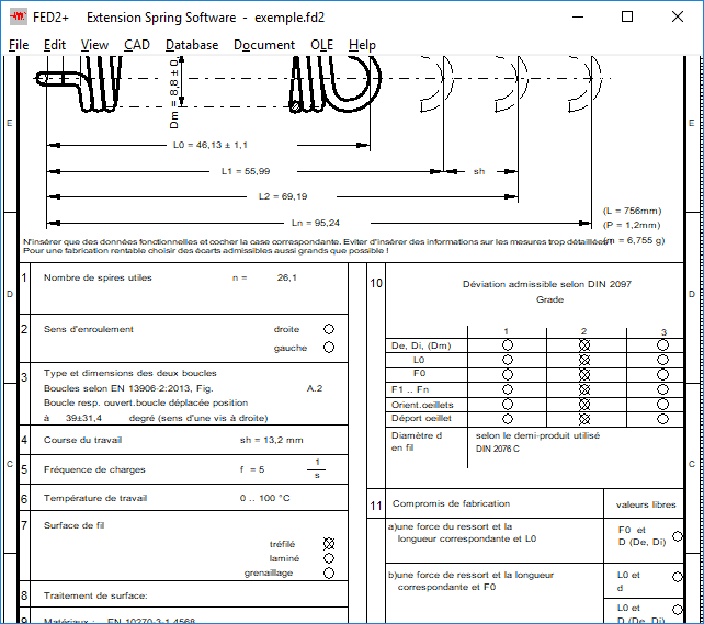 Production drawing of extension springs can now be generated in German, English, French, Italian, Swedish, Spanish and Dutch language.