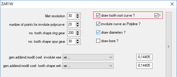 ZAR1+, ZAR1W: Draw tooth root fillet trochoide settings