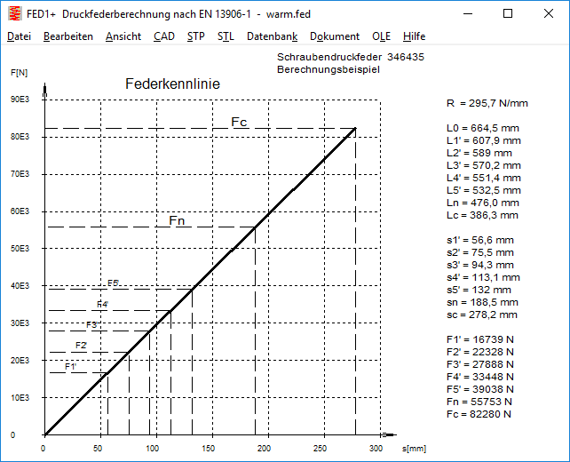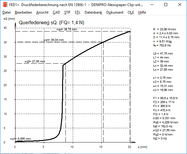 Die Federrate ergibt sich den Federkräften F1, F2 und dem Hub und wurde deshalb bisher eingeklammert angezeigt. Weil man aber inzwischen auch Toleranzen für die Federrate eingeben kann, wird R künftig ohne Klammern abgezeigt.
