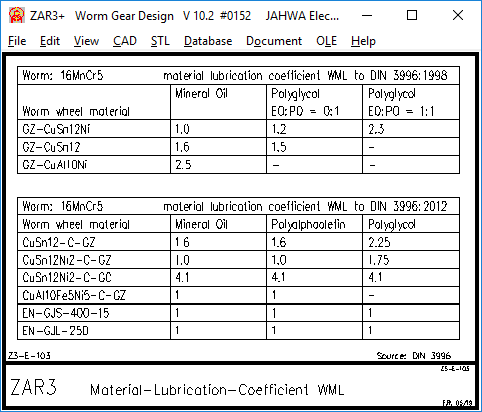 The strength of worm gears was previously calculated according to DIN 3996:1998-09. Now, the newer edition of 2012 has been integrated. ZAR3 + can now calculate strength and efficiency according to 3 methods: according to Niemann, according to DIN 3996: 1998 and according to DIN 3996: 2012. There were some changes on input:
