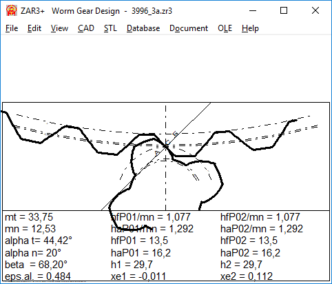 The meshing of worm and worm wheel can now also be represented in axial section in addition to the radial section. Also 1-tooth worms (ZI) are now displayed.