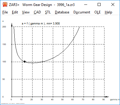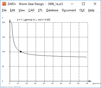 Diagram shows the smallest possible center distance, if mn remains constant. With worm gears, however, the axial modulus of the worm is normally specified, which corresponds to the tangential modulus of the worm wheel at 90 ° crossing angle (mx1 = mt2). Then mn = mt2 * cos (beta2) and