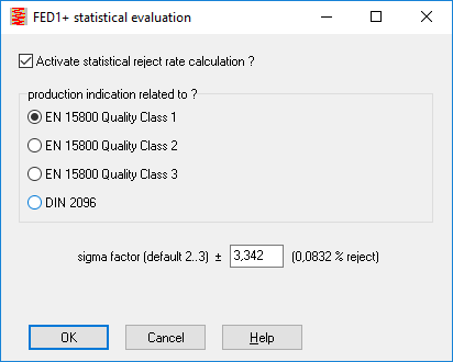 Under Edit \ Statistics, you can enter a sigma factor for a measured reject rate for quality degree 1 or 2 or 3 (e.g., 1% for Grade 1). When specifying special tolerances, the expected reject rate can be calculated by FED1+.