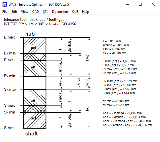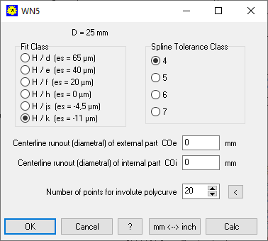 The ISO tolerances js and k for external involute splines have been added under Edit \ Quality. As fit with the internal toothed spline (ISO tolerance zone H) this results in transition fits.