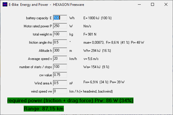 EBIKE software: calculate the range of e-bikes and other vehicles