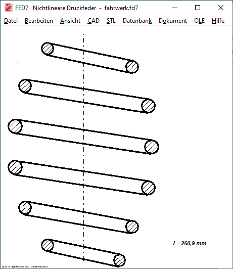 Die Zugfederzeichnung gibt es jetzt in vertikaler und horizontaler Ansicht, mit und ohne Text. Seit man für die Ösen einen anderen Windungsdurchmesser eingeben kann, waren Zugfedern mit Hakenösen zu groß gezeichnet worden. Der Fehler wurde korrigiert.