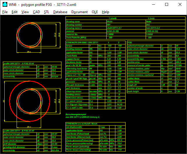 Soon there will be a new calculation program WN13 for PnG connections with 2, 3, 4, 5, 6, n corners (P2G, P3G, P4G, P5G, PnG) where you can freely enter the constant diameter and eccentricity. The maximum eccentricity is elim = d / (2 * (n²-1)). Polygonal shaft connections could become the preferred shaft-hub connection for non-cutting machine elements.