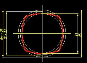 Erst wenn man die Exzentrizität weiter verkleinert auf 0.7mm, erhält man ein harmonisches "P4G" Profil. Der Außendurchmesser dre ist jetzt kleiner als der Durchmesser d1 der ursprünglichen DIN-Größe.